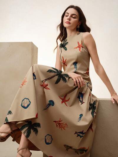 夏ビーチバカンス祭りイースター独特のデザイン ビーズ 袖なし プレミアムハイエンドドレス女性用-50%