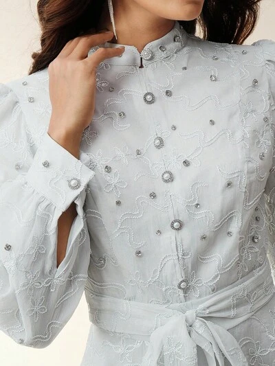 モダンでファッショナブルな刺繍ボディス ディテールの女性用ドレス-50%