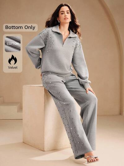 ファッショナブルなサーマルライニング ゆとりのあるワイドレッググレーレディーススウェットパンツ、秋、フェスティバル、春、スパンコール、シック、カジュアルに適しています-28%