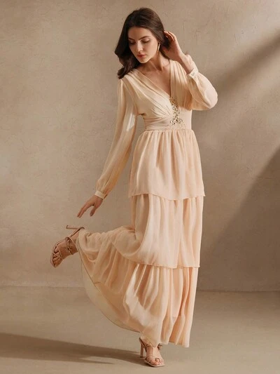 3Dラインストーンデコレーション付き レディース ロングドレス、エレガントで多用途な フォーマルガウン-44%