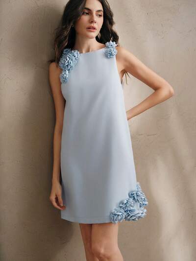 エレガントなフラワーデコレーション Aライン ミニドレス、パーティー用、夏のカジュアルフェスティバル-58%