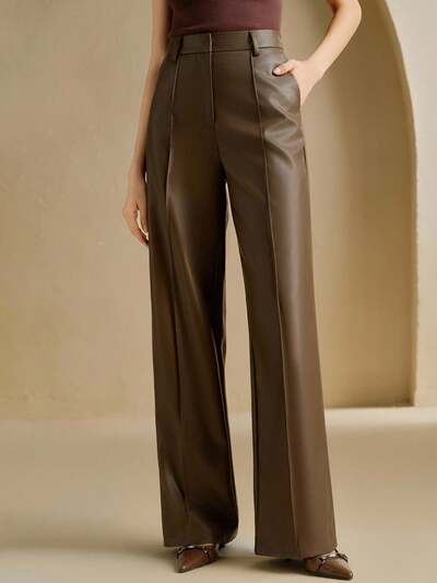 新品 高品質 ソフトレザー ワイドレッグパンツ-62%