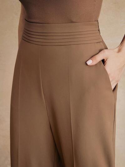 通勤に適したウエストストライプ、サイドポケット、サイドジッパー、伸縮ウエスト、ストレートレッグカジュアルパンツ(レディース)-32%