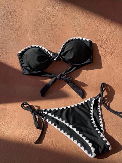 コントラストカラートリミング ビキニセット、カジュアルビーチホリデー-32%