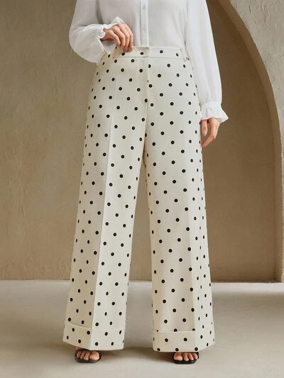 プラスサイズ レディース ドット柄 ハイウエスト ストレートレッグ パンツ、バケーションスタイル-46%