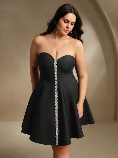 Vestido de convidada de casamento modesto, elegante e casual para mulheres plus size, com decoração de strass brilhante, silhueta de cintura alta em A-line, estilo graça de deusa para festa e banquete, adequado para primavera e verão