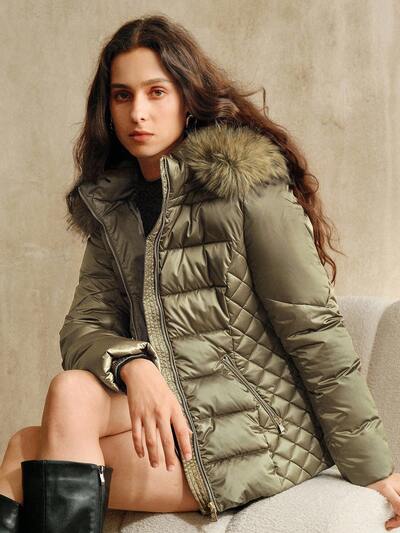 Casaco Curto Slim Fit Acolchoado com Gola de Pele, Moda de Inverno-26%